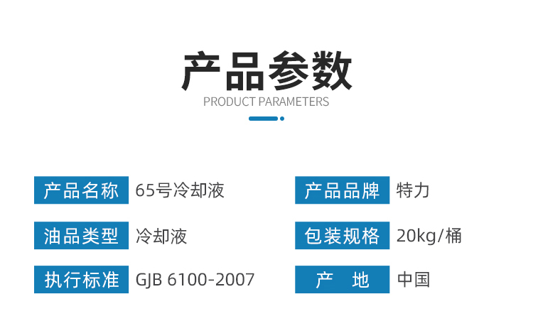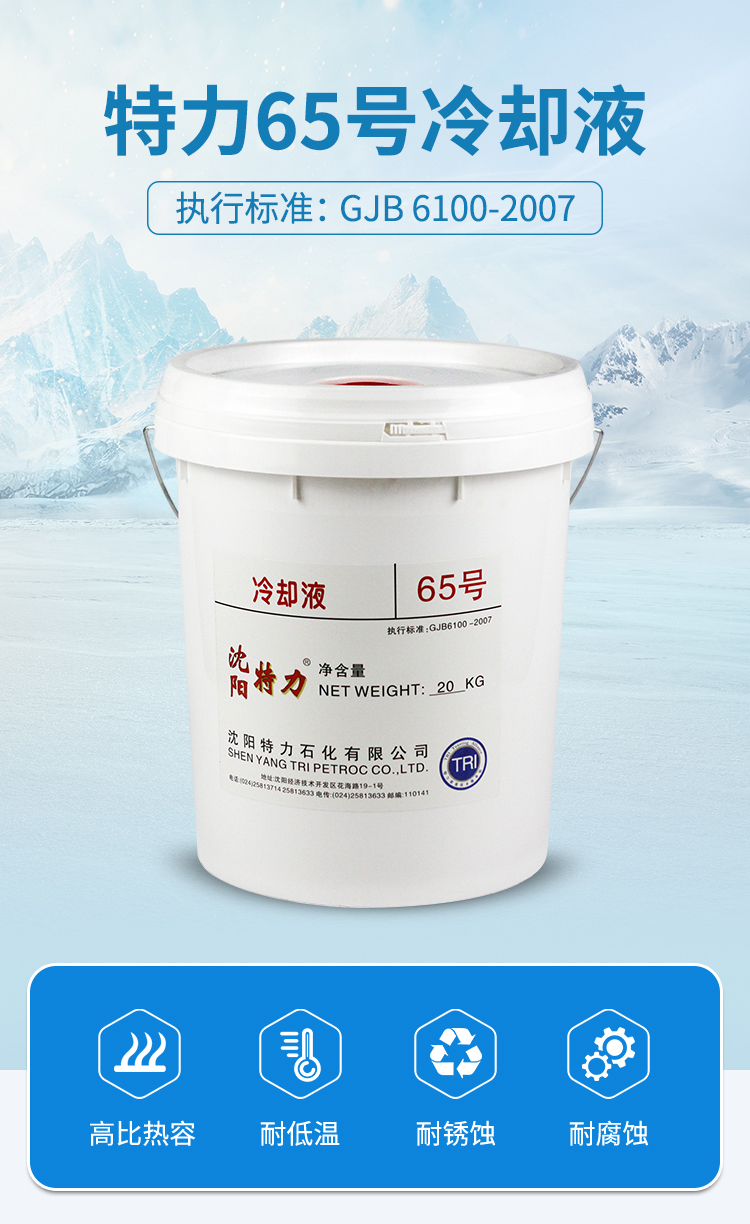 該產品符合國軍標GJB6100-2007執行標準,與長城AF65號冷卻液屬于同一種類型的產品,可以互為替換。除了65號之外,特力還提供冷卻液的標號、包裝定制功能:包括40號、45號、50號、60號以及4kg、20kg以及客戶所需包裝服務,歡迎咨詢!