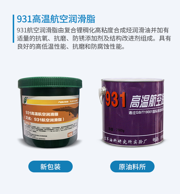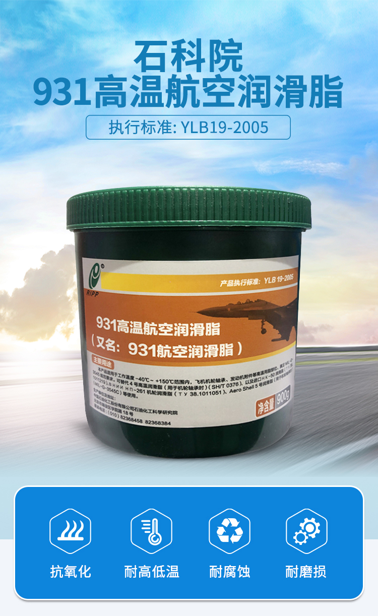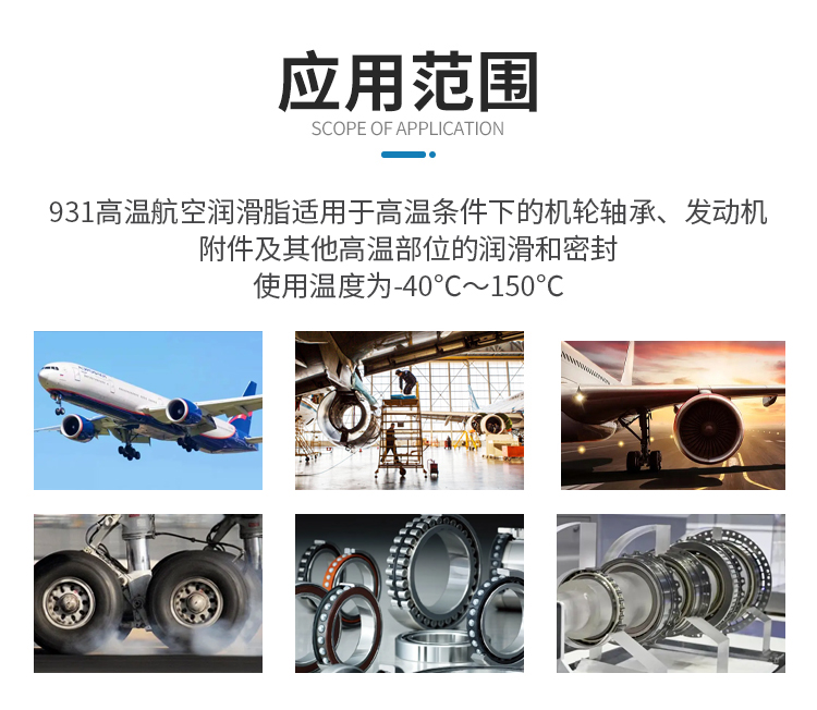 931高溫航空潤(rùn)滑脂適用于高溫條件下的機(jī)輪軸承、發(fā)動(dòng)機(jī)附件及其他高溫部位的潤(rùn)滑和密封,使用溫度為-40℃~150℃。