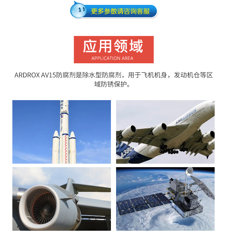 ARDROX AV15防腐劑是除水型防腐劑,用于飛機機身,發動機倉等區域防銹保護。