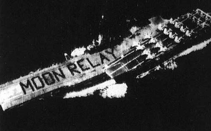 該項目使用月球作為通信中繼設備,并于1959年成功利用月球表面將信號從華盛頓中繼到夏威夷和美國間諜船。1960 年,該系統正式啟用,在海軍軍官之間進行信息傳輸。圖片上美國的水手們在船上拼出了“MOON RELAY”的圖案。