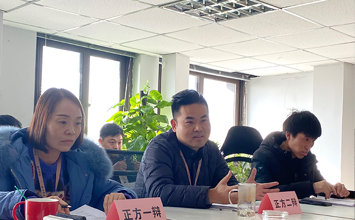 此次辯論賽分為四組,兩兩對決,勝利的隊伍參與決賽的競爭。初賽的辯論題目分別是:“正方:法大于情,反方:情大于法”以及“正方:知足長樂,反方:不知足長樂”于2023年1月7日開始,決賽的辯論題目是“正方:不以成敗論英雄、反方:英雄自以成敗論”于2023年1月11日舉辦。由宋總擔(dān)任裁判員、陳經(jīng)理和文經(jīng)理分別擔(dān)任觀察員,公司所有同事觀看本次辯論大賽。